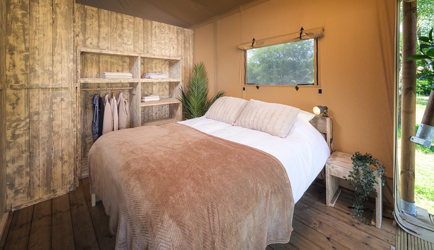 Safarizelt Grand Lodge mit Dusche und ToiletteEntdecken Sie die Safaritent Grand LodgeLuxus, Freiheit und ultimatives Outdoor-Lebensgefühl in einem!2 Schlafzimmer | ca. 42 m² (max. 2 + 3 Personen)Stellen Sie sich vor, Sie wachen mit den sanften Klängen der Natur auf, eine Tasse Kaffee in der Hand und einen Panoramablick ins Grüne direkt neben Ihrem Bett. Im Grand Lodge Safari-Zelt mit eigenem Bad verschmelzen Komfort und Abenteuer auf harmonische Weise. Dieses geräumige Safari-Zelt bietet Ihnen jeden erdenklichen Luxus inmitten der Natur. Und das ist noch nicht alles … die Grand Lodge hat ein einzigartiges Highlight, das Ihren Aufenthalt unvergesslich macht! Die gesamte Zeltplane lässt sich an der Vorderseite öffnen und verwandelt sich so in eine fantastische Outdoor-Bar. Erleben Sie Outdoor-Lifestyle wie nirgendwo sonst.